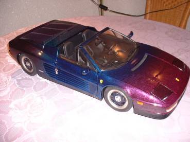 Eine Anzahl von Testarossa Coupés wurde von speziellen Tuningfirmen in Spider/Cabriolets umgebaut. Da beim Coupé die Karosserie tragendes Element im Festigkeitskonzept darstellt, müssen bedeutende Veränderungen vorgenommen werden, um beim Cabrio dieselbe Stabilität und Steifigkeit zu erreichen. Unser Modell wurde vom italienischen Designer Pininfarina entworfen und ist im typischen Ferrarirot lackiert.